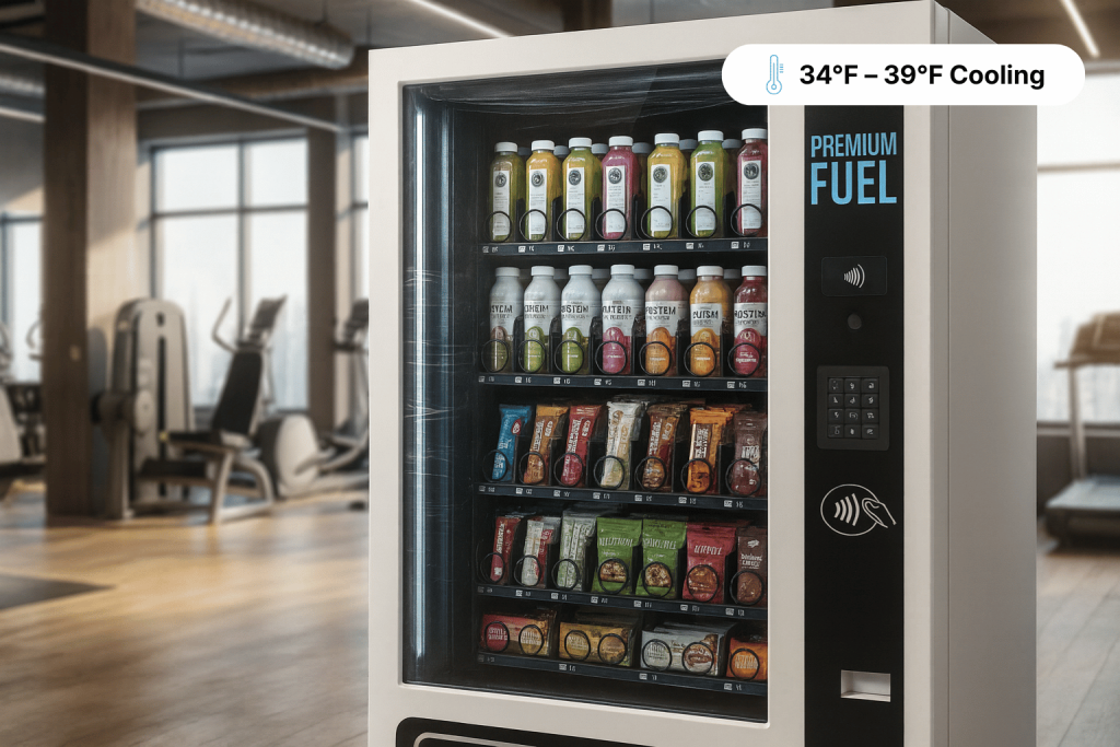 A commercial-grade refrigerated vending machine designed for high-traffic locations with limited space. Maximum variety in a compact footprint.