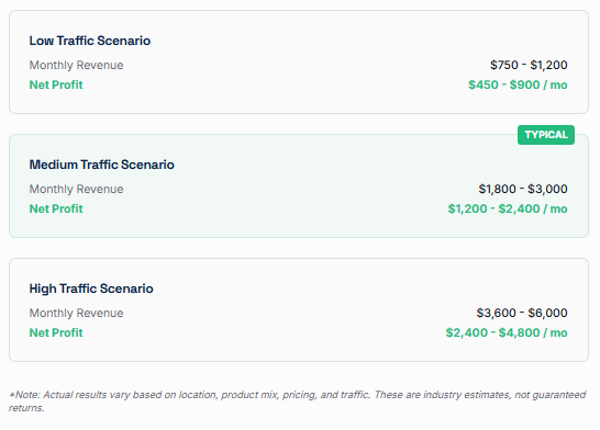 See the potential. With a medium-traffic location, payback occurs in approximately 7–8 months. After that, it’s pure profit.